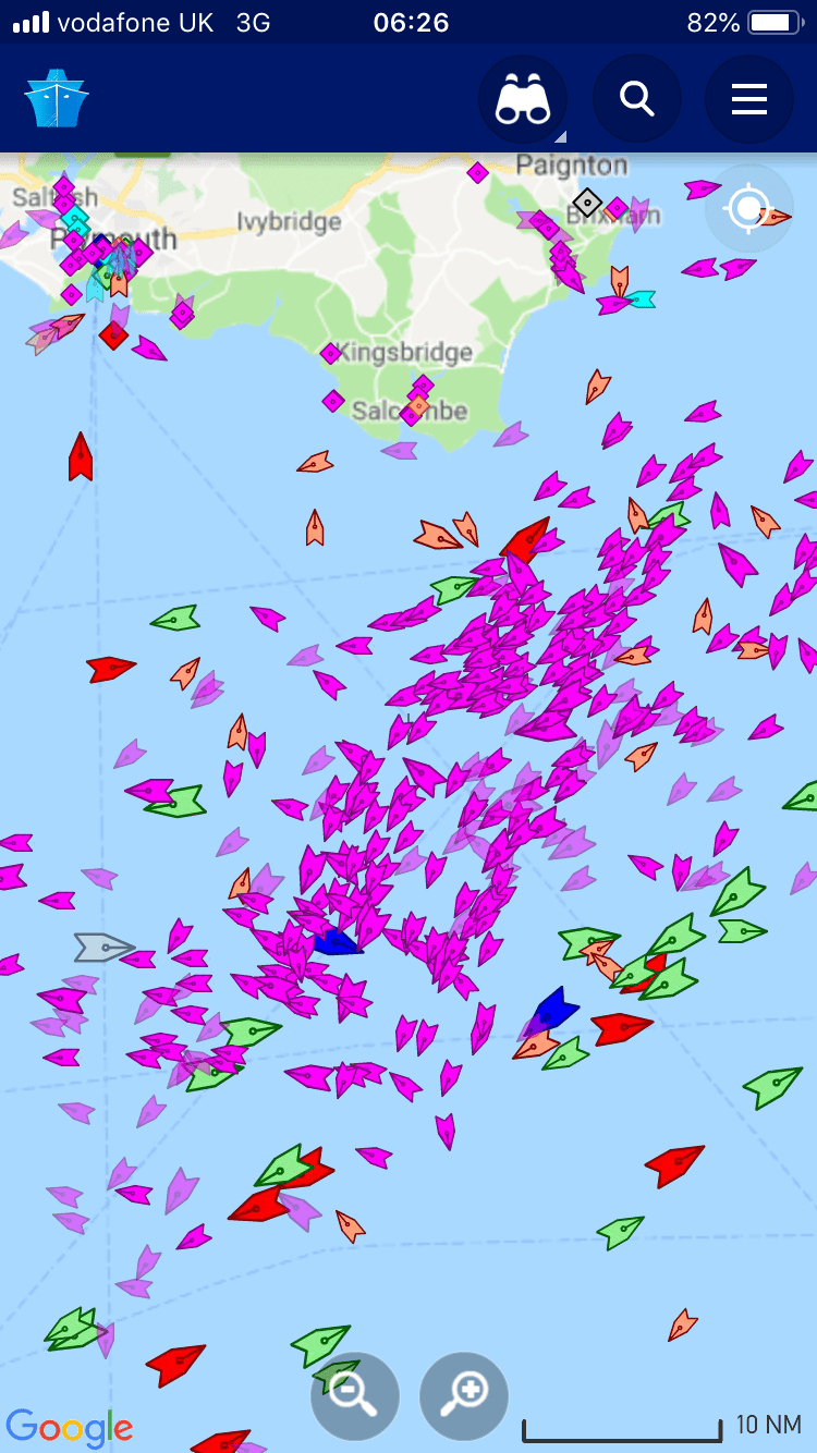Saturday 3rd August finds me on a train to Plymouth, with a dream forecast for the days ahead, to join Tom and Daisy in bringing Cherubino back to her home port. Plymouth Haven marina, which won the prize of best marina showers of the entire trip (they even had a bath!) had requested that we leave by Sunday as they were hosting the Fastnet race fleet who’d started on Saturday. They’d have a fairly long wait though as even the biggest boats were all still on their way out to the rock on Sunday morning, a pretty impressive sight on AIS.