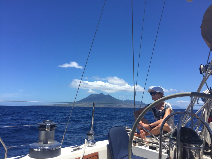A very satisfyingly impressive looking Mt Liamuiga behind as we sail for St Eustatius.