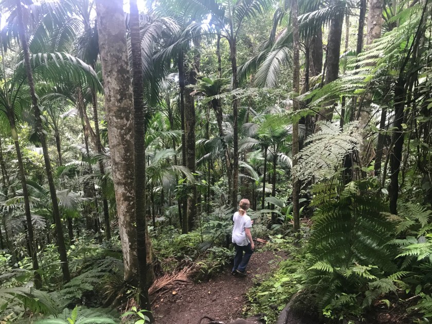 One place we were guaranteed to escape the hordes was my chosen family treat for Easter Sunday, which was to turn the family out of their bunks at 6am so we could climb to the top of Mount Liamuiga, the dormant volcano that dominates the landscape of St Kitts. I first read about the walk in the Lonely Planet guide which said it was “tough, tough, tough” and shouldn’t be attempted without a guide. I then kept googling (as you do!) until I read a review that said it wasn’t really that bad and you certainly didn’t need a guide. So off we went. I have to say hats off to the children, for lack of bleating. I think it actually stunned them into silence as it was a tough uphill walk followed by a significant climb up boulders, tree roots and scree slopes which required a lot of stretching for the shorter limbed members of the family. To my great delight, we were actually walking inside rainforest, with the canopy intact and providing complete shade, the sounds of monkeys and elusive birds and the smell of rotting vegetation. Heavenly.