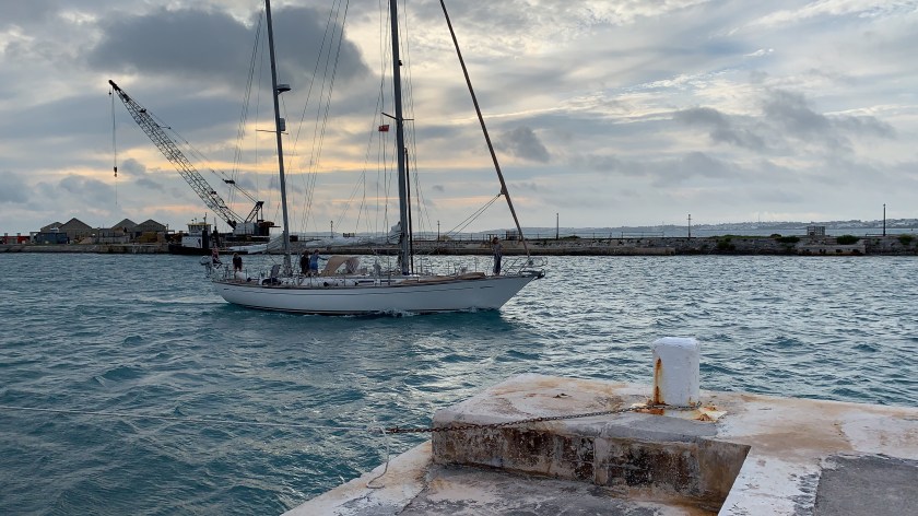 Our first day here we were confined to the boat since it was too rough to land the dinghy ashore. During the night, the swell died down and we went ashore in the dinghy with two bags of washing and the ships’ papers. Dora and I headed off to Lajes on the other side of the island to the marina/port office to complete formalities and get the salt out of our clothes. We were mightily pleased not to have our boat in there as the waves were slurping into the tiny marina, causing all the occupants to constantly heave against their mooring lines, their masts waving dangerously close together from side to side. The marina manager said he wished they would come round to the safety of our bay!